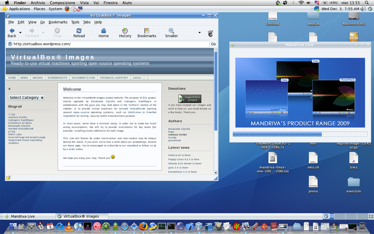 - Zenwalk 5.2 with Gnome on Mac OS X host